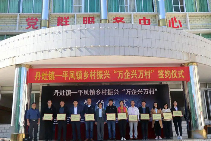 近日,革命老區肇慶市封開縣平鳳鎮舉行“萬企興萬村”行動簽約儀式。廣東西屋康達空調有限公司在佛山市南海區丹灶總商會的帶領下,與佛山市康暉照明有限公司、廣東炬申物流股份有限公司等其余10家民營企業代表來到平鳳鎮,與該鎮11個村委會負責人簽訂村企結對幫扶協議書。